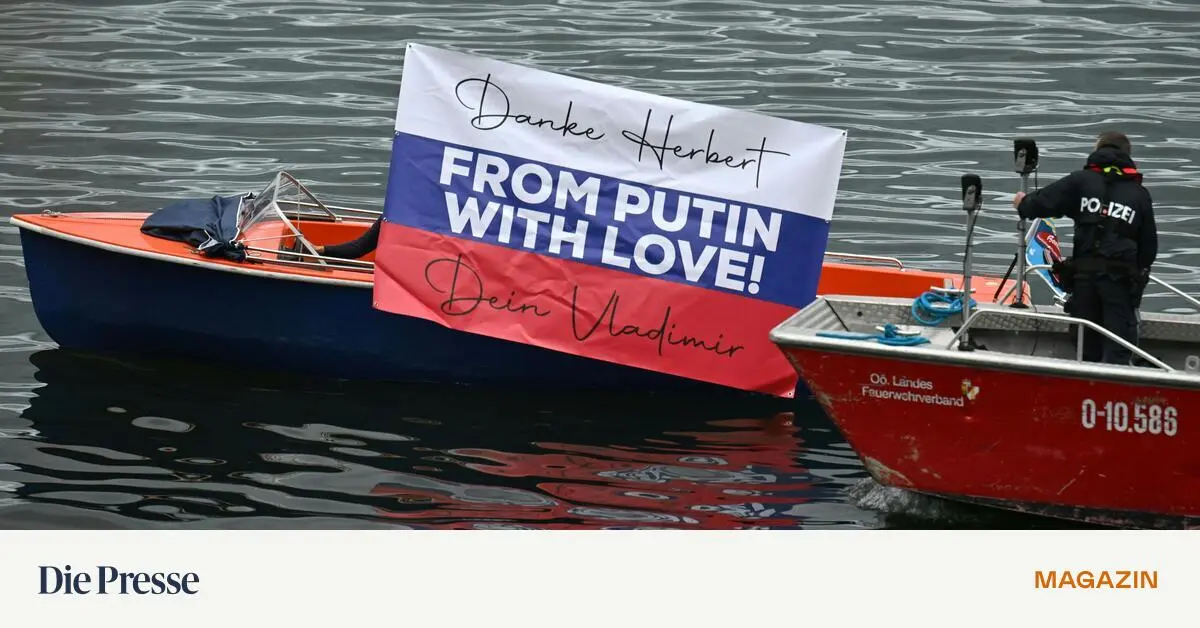 Der Beschwerdeführer war auf einem Boot am Traunsee unterwegs – während im Vordergrund FPÖ-Chef Herbert Kickl im ORF-Sommergespräch interviewt wurde "Danke Herbert – dein Vladimir!", richteten Aktivisten...weiterlesen »