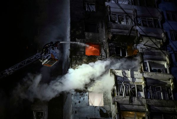 Der ukrainische Präsident Wolodymyr Selenskyj hatte Montagabend vor einem möglichen "massiven Schlag" der russischen Streitkräfte gewarnt Firefighters work at the site of an apartment building hit by a...weiterlesen »